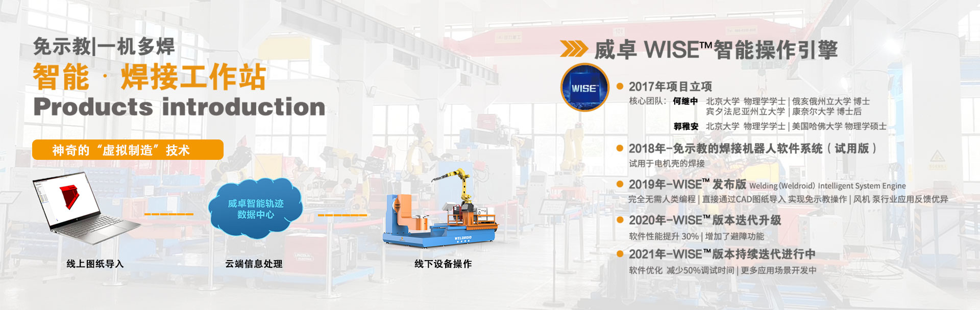 立即咨詢 現(xiàn)在聯(lián)系我們:0510-85384033無錫威卓智能機器人有限公司成立于2017年,是無錫市政府引進的科技領(lǐng)軍型高新技術(shù)企業(yè),公司研發(fā)團隊80余人,我們堅持自主創(chuàng)新,利用自主開發(fā)的虛擬制造技術(shù)對傳統(tǒng)焊接行業(yè)進行升級改造。 公司主推的工業(yè)風(fēng)機系列-智能焊接工作站產(chǎn)品,具有免示教、實時跟蹤、簡易工裝、傻瓜式操作等優(yōu)點,真正幫助企業(yè)解決了招焊工難,用工成本高,焊接質(zhì)量不穩(wěn)定等問題。
